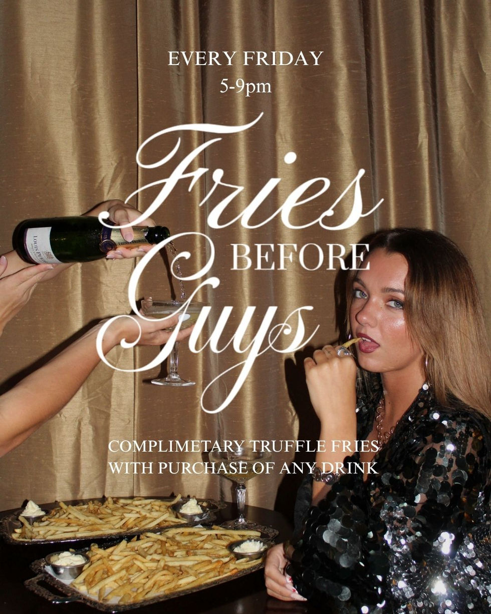 “Fries Before Guys” was a weekly concept I created to drive foot traffic and engagement, offering complimentary truffle fries every Friday with the purchase of any drink. The idea leaned into a playful, social-first angle while still fitting within Madison Maison’s elevated brand!